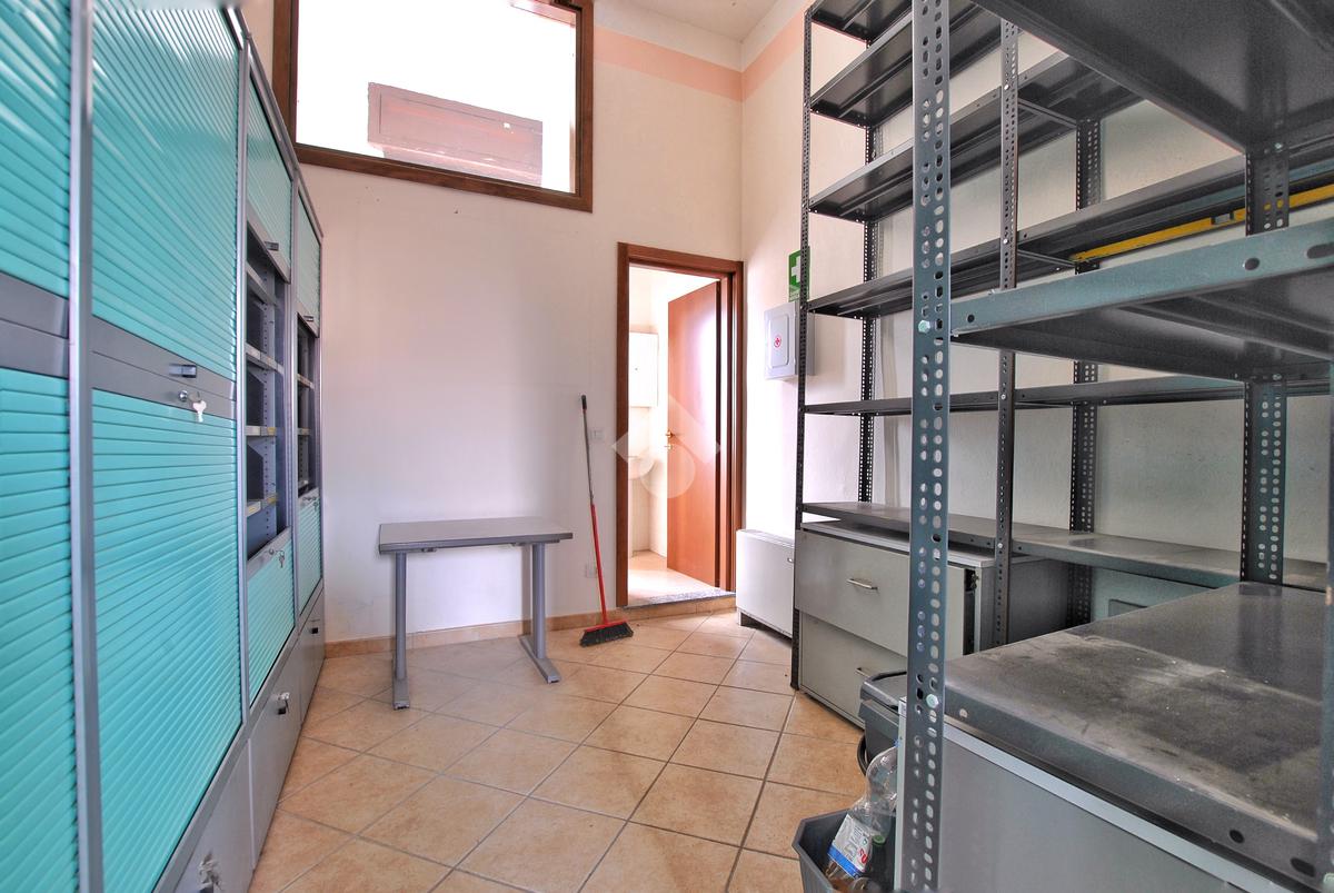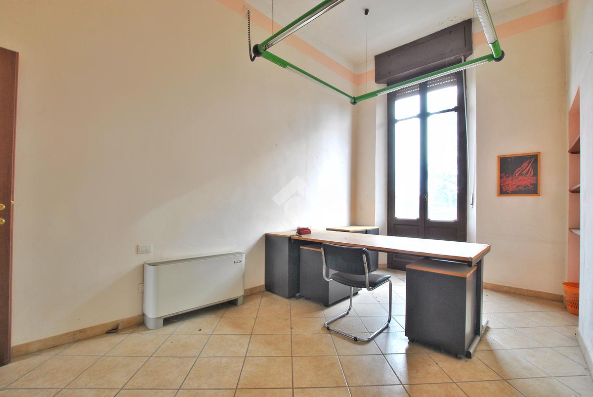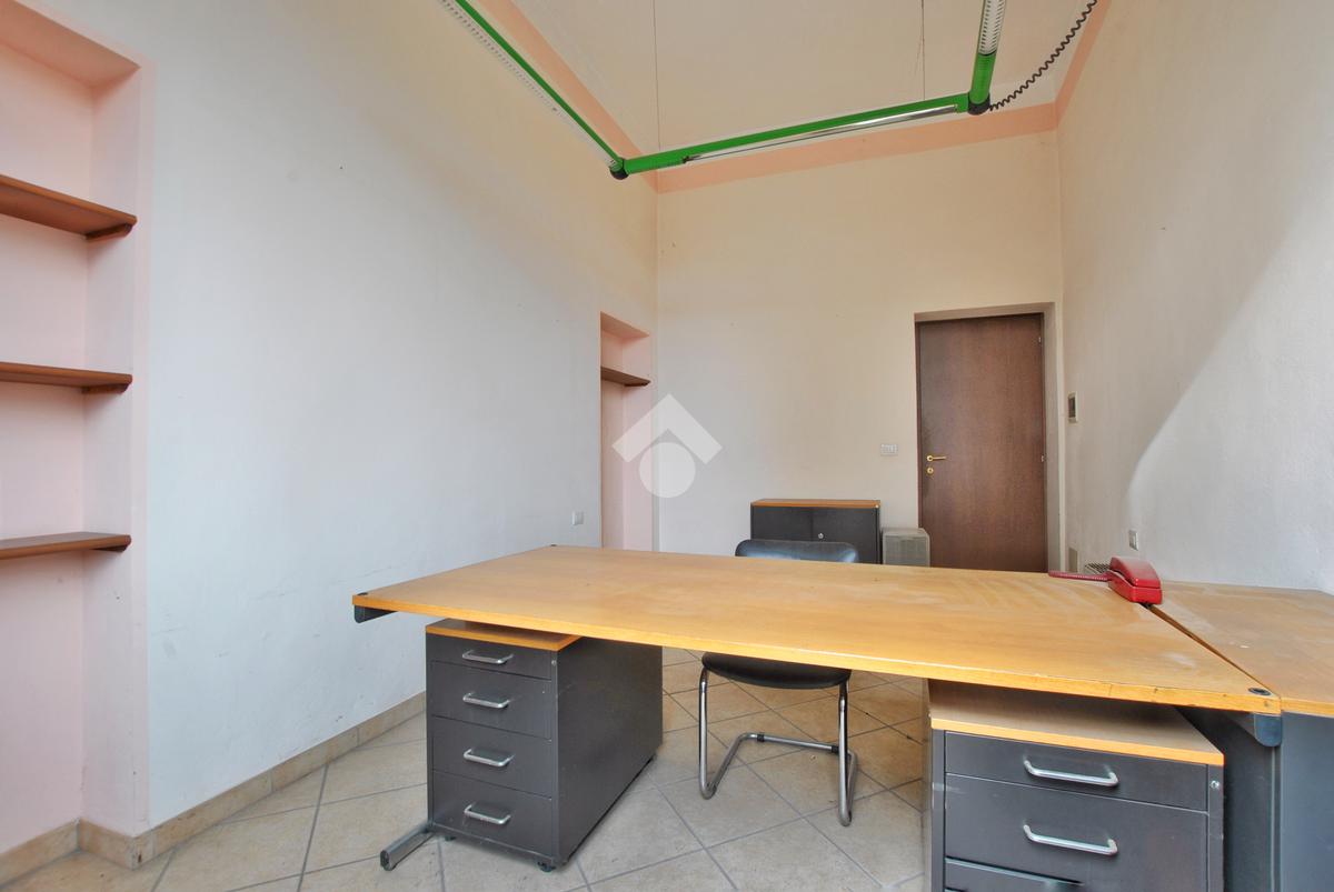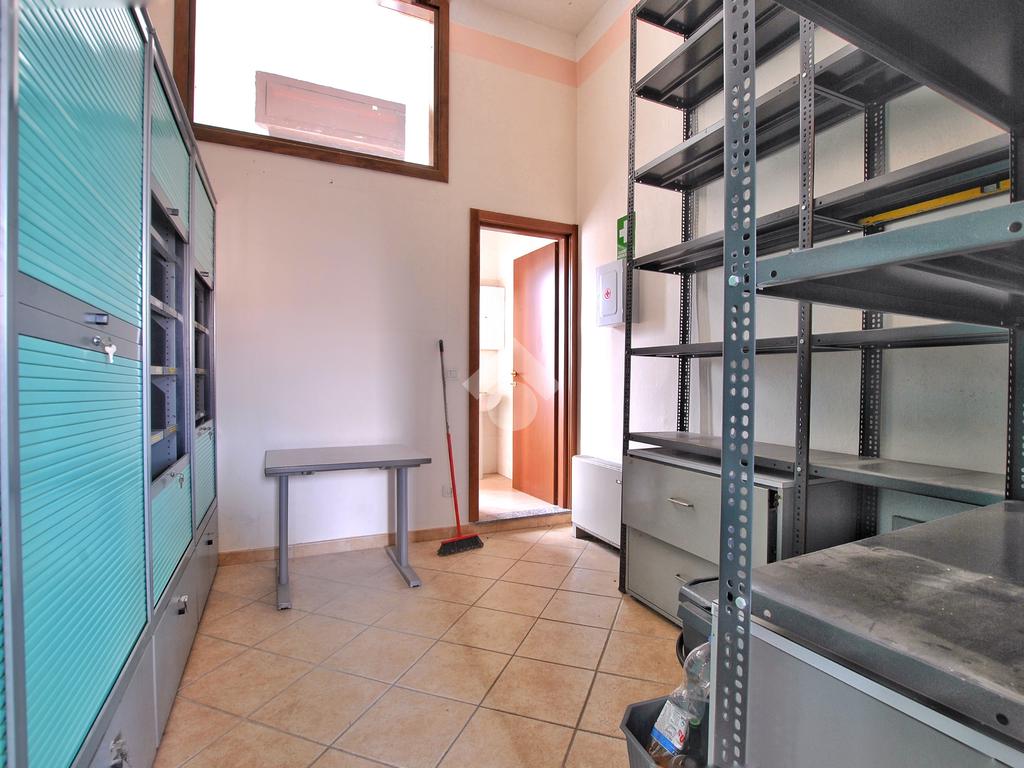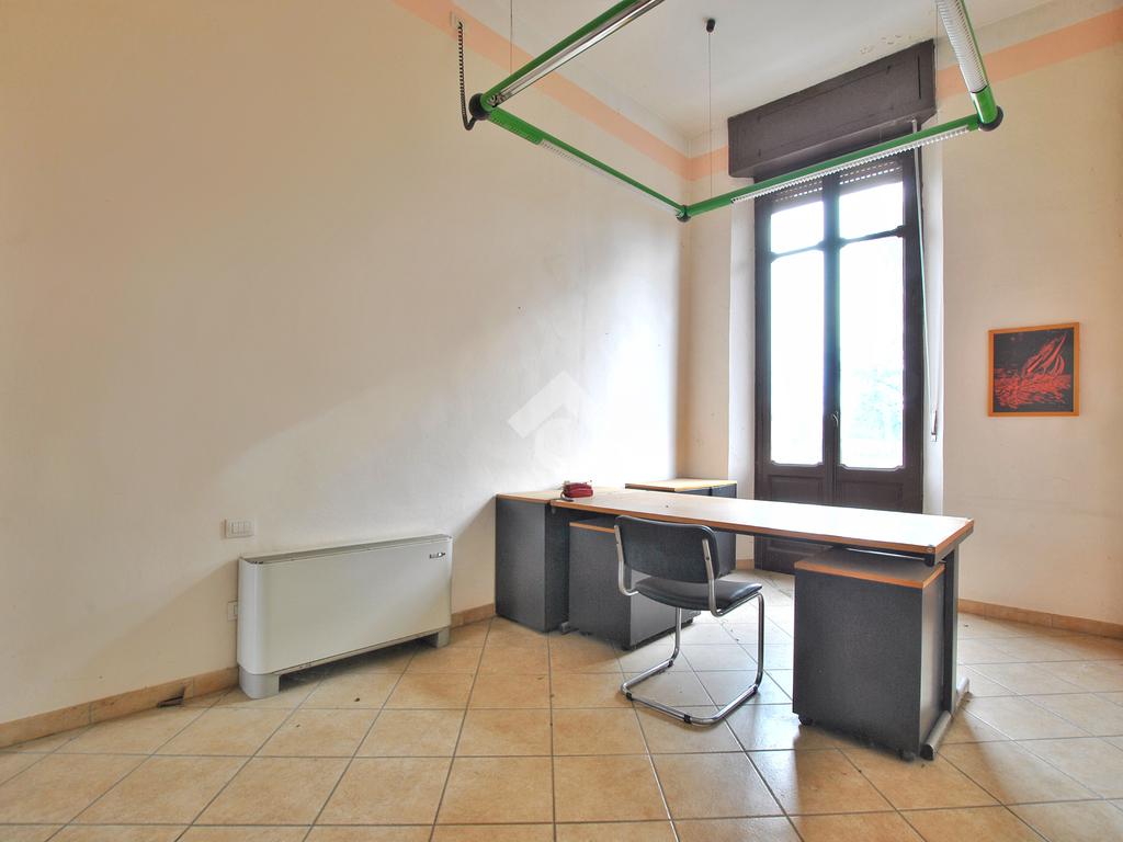 L’unità, con destinazione d’uso ufficio, si presta facilmente a conversione residenziale ed è composta da tre locali: ampio ingresso con porta finestra e affaccio sul cortile interno del complesso, secondo locale con sfogo sul balcone e affaccio sulla piazza, locale archivio e servizi igienici con doccia, preceduti da antibagno.