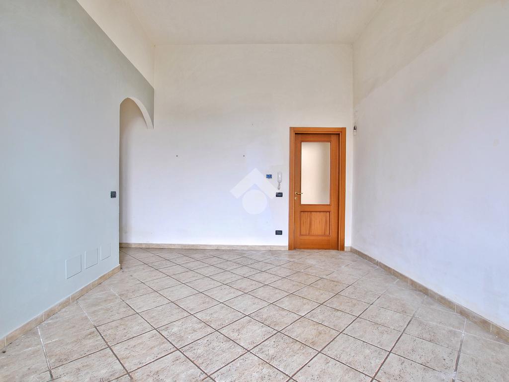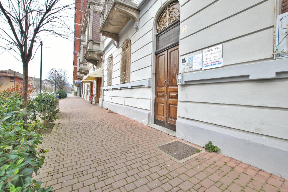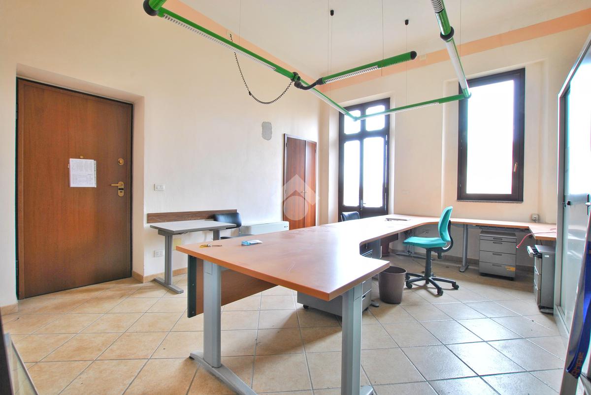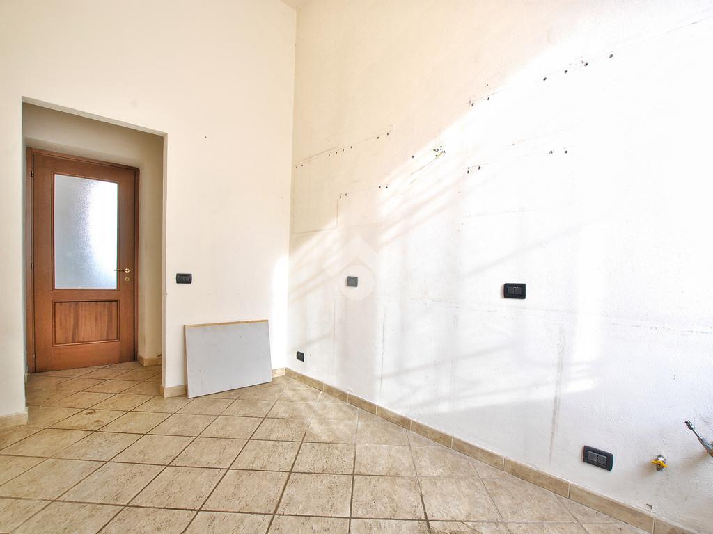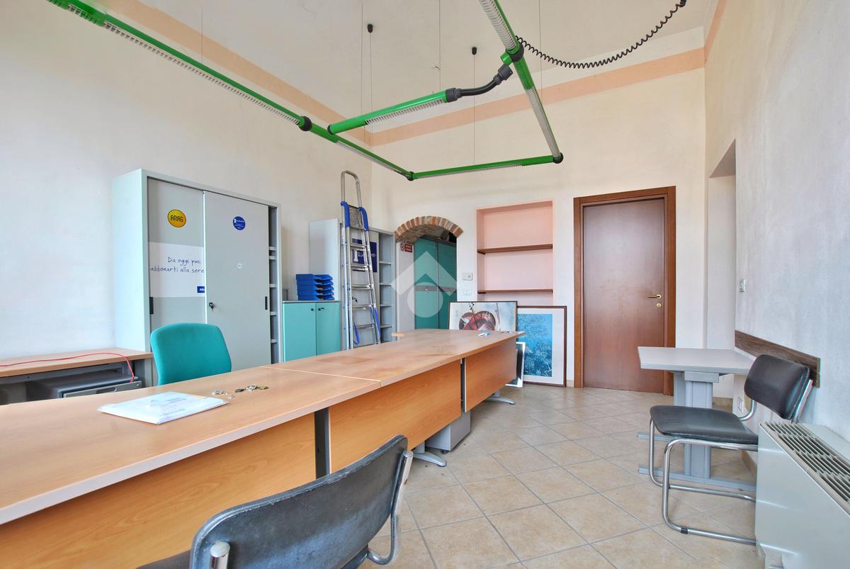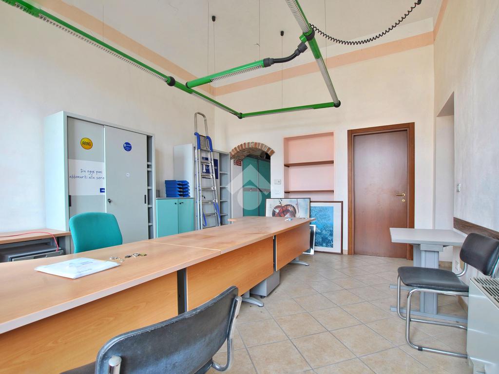 L’unità, con destinazione d’uso ufficio, si presta facilmente a conversione residenziale ed è composta da tre locali: ampio ingresso con porta finestra e affaccio sul cortile interno del complesso, secondo locale con sfogo sul balcone e affaccio sulla piazza, locale archivio e servizi igienici con doccia, preceduti da antibagno.